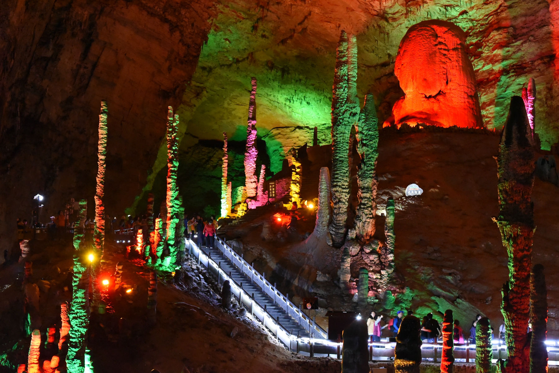 龍宮大廳是目前世界上旅游溶洞內(nèi)容最為豐富的大廳。龍宮位于黃龍洞第四層,是黃